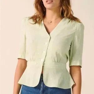 Rouje Light Green Floral Blouse Size 38