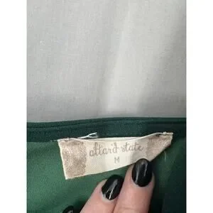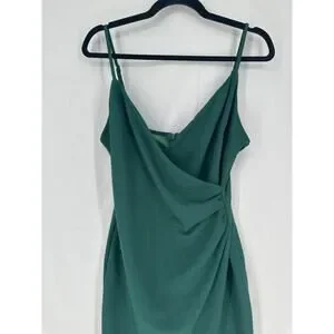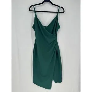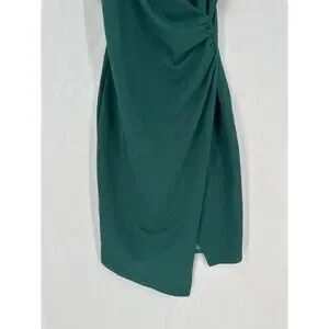Altard State Dress Womens Medium Green Midi Party V Neck Ruched Stretch Dark