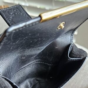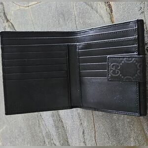 This Gucci wallet showcases the iconic GG monogram embossed in luxurious black leather. Preloved in good condition inside and out.