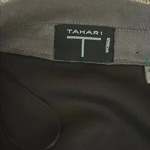 Chic dark coat by Tahari. Versatile and timeless design.