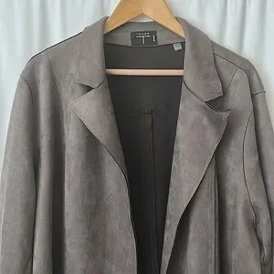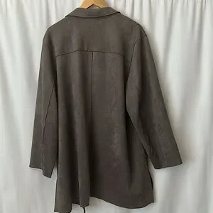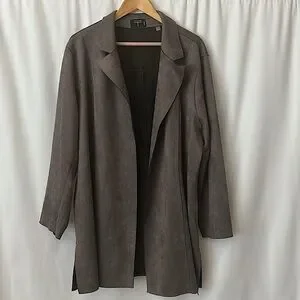 Tahari Stylish Dark Grey Faux Leather/Suede Long Jacket Coat **Size 3X** 🌺🌺