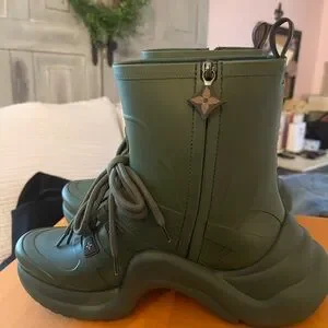 Louis Vuitton Olive Lace-Up Boots #1 rain/snow boot on vogue Brand new