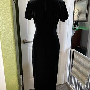 Chic black velvet figure flattering maxi dress by Robbie Bee. Features a classic silhouette. Ideal for elegant occasions. Excellent condition, never worn.