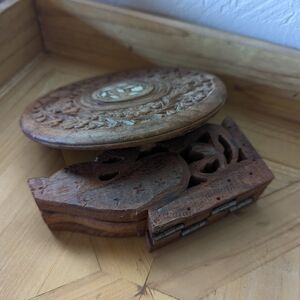 6" Handmade Indian Carved Wood Boho Accent Statue Stand Mini Table Altar Folding