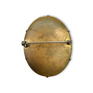 Antique Porcelain Cherry Blossom Brass Brooch