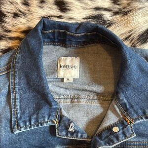 This Kensie jean jacket in a timeless blue hue offers a classic trucker silhouette, perfect for adding a touch of casual elegance to any outfit. Crafted from durable denim, it features a traditional collar and lapel design, making it a versatile staple for your wardrobe.