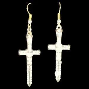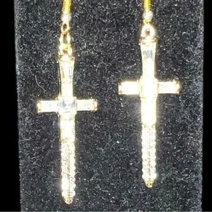 Add a touch of elegance with these stunning faux gold cross earrings. Perfect for any occasion.