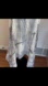 Beautiful linen dress in artistic design in pastel blue, grey, and white tones. V- neck, sleeveless,flared out , uneven hemline, easy comfortable loose fit.