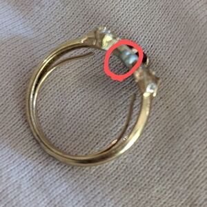 1 stone is missing but it doesn't take away from the ring and is still pretty. sz 6.5 to 7