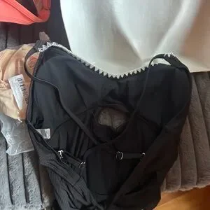 Stylish black one-piece swimsuit featuring white trim. Perfect for beach days. NWOT Also included is a BNIP shapewear suit.