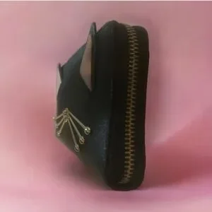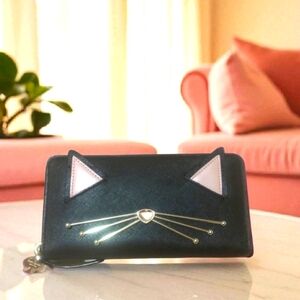 Adorable Kate Spade large zip aroundwallet, featuring cat ear design and gold accents. Perfect for cat lovers. This is a large wallet in excellent condition.
