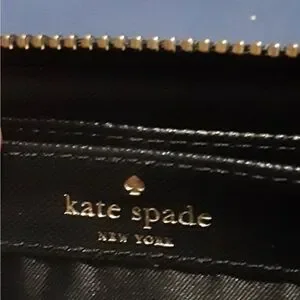 Kate Spade Black Cat Ear Wallet with Gold Accents. Zippered Large Wallet