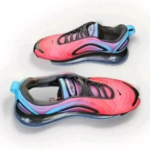 The Nike Air Max 720 Men's Sneakers in size 13 feature a stylish design with a hyper grape and black color scheme accented by hyper pink details. These sneakers are perfect for activewear and casual occasions, with a comfortable fit and adjustable lace-up closure. The rubber outsole provides durability and traction, making them suitable for walking, basketball, and running activities. With a low top shoe shaft style and standard shoe width, these sneakers combine fashion and functionality for the modern man on the go. No Box, Pre-Owned, Excellent Used Condition.