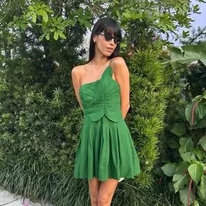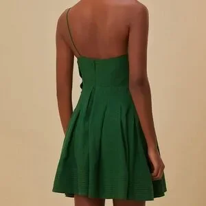 NWT Farm Rio Lea Linen Tropical Vacation Pleated One Shoulder Mini Dress Green