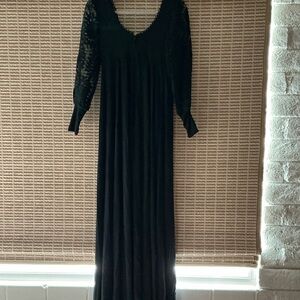 Vintage 1970’s Black Lace up front, long sleeve dress