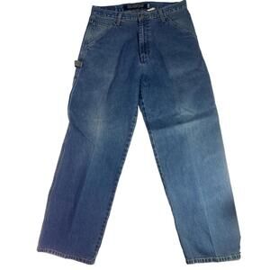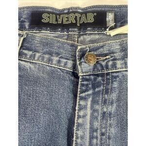 Pre-OwnedVintage Levi Silvertab Men’s Blue Baggy Carpenter Denim jeans in size 34"X31". The brand is Southpole, and they are a regular fit with a wide-leg style. The jeans are part of the Levi's Silvertab product line and are designed for men. With a classic blue color and a 31-inch inseam, these jeans are a versatile and stylish addition to any wardrobe.