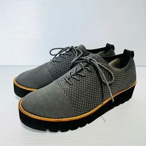 Eileen Fisher Eddy Gray Recycled Stretch Knit Platform Oxford Size 9