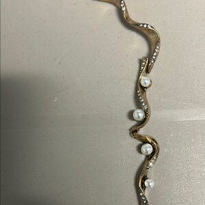 NEW Imitation Pearl & Gold tone Wavy Necklace