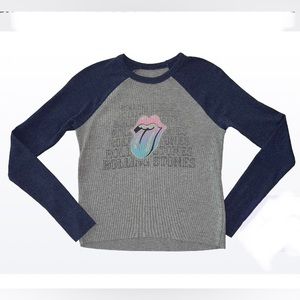 Rolling Stones raglan sleeve cropped raw hem ribbed top. New with tags. 90% cotton 10% polyester