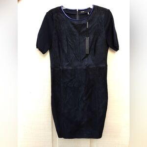 Gorgeous navy suede with short sleeves with back zipper. 36 long, 34 bust, 32 waist