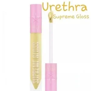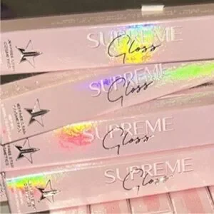 Jeffree Star Supreme Gloss in a soft pink shade. High-shine finish. Iconic star logo on packaging.