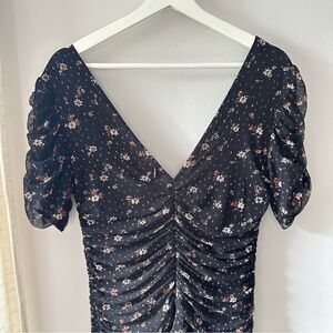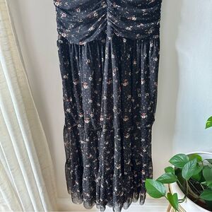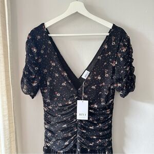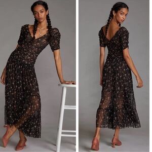 MISA Los Angeles Floral Rebecca Ruched Maxi Dress in Autumn Ditsy Mesh