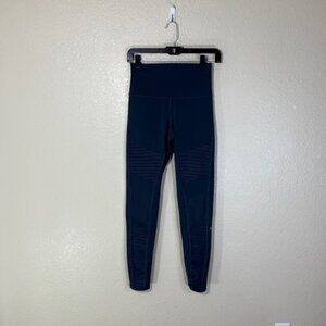 ALO Yoga Leggings Womens Small Moto Blue Gray Mesh Panel Logo Gym Workout