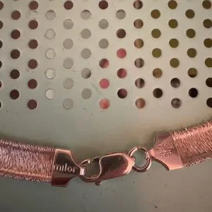 This is a beautiful thick Milor Italy 925 Sterling silver chain. Marked on clasp. No flaws. Beautiful. 14" approx. falls at the collar bone.