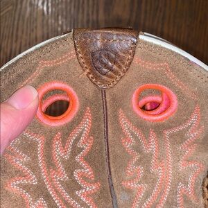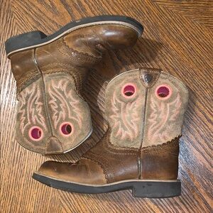 Ariat Girls Fatbaby Brown Leather Suede Hot Pink Western Cowgirl Boots 2 Youth