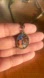 Oval pendant necklace featuring Beauty and the Beast design. Antique gold-tone finish with colorful artwork.