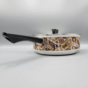 Vintage MCM Prestige Japy Marne Enamel Paisley Floral Sauce Pan w Lid France