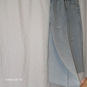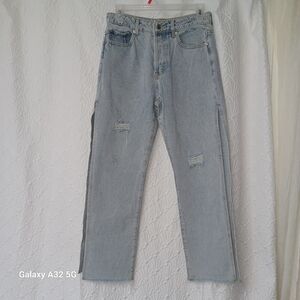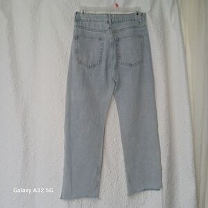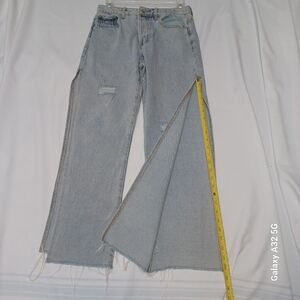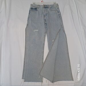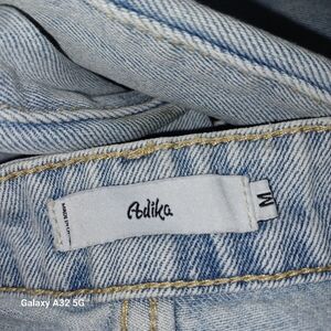 These Adika jeans women size m feature a stylish flare and wide-leg design in a classic blue hue. The high-rise waist and vintage-inspired wash offer a relaxed yet trendy look. Perfect for adding a touch of retro flair to your casual wardrobe.