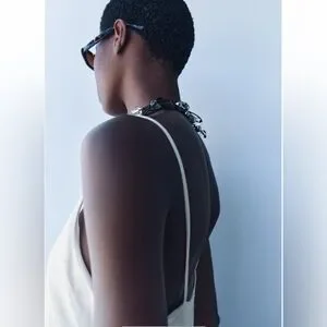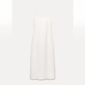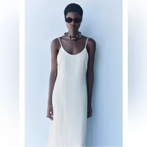 Zara Linen Blend A-Line Midi Dress Round neckline & thin straps ZW Size S NWT