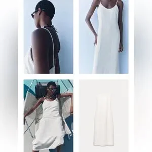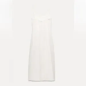 Zara White Linen Blend A-Line Midi Dress Round neckline strap ZW Cotton S NWT