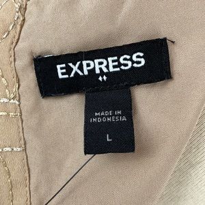 NWT Express Tan Blouse with Metallic Thread and Button Down Back - Size Large