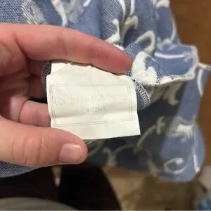 Beautiful hefty weight blue & white pillow sham measuring 25" X 30". Sized for a 21" X 26" pillow. 80% cotton & 20 % polyester with full flap opening in back. Scalloped edges. Made in Portugal. In EUC