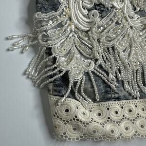 YMI Beaded Pearl Painted Denim Jacket Coquette Western Glam Festival Size S USA