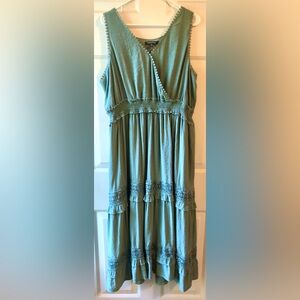 Laurel Grey Agave Blue Green Sleeveless Crochet Ruffled Bohemian Maxi Dress XXL
