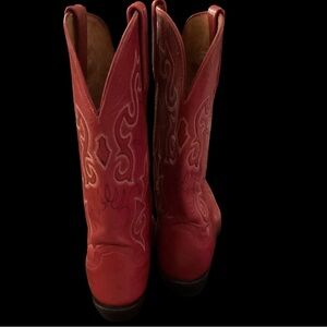 One of the renown makers of western boots, Lucchese! Made to last a lifetime 100% leather in sexy red! Be the Belle of the Ball. Guaranteed to attract the opposite sex and their flirty compliments! Wear them with frayed shorts or tight jeans - you’ll be glad you bought these! From the Voice of experience! NOTE: The price of these boots is non-negotiable due to their being worn less than eight times and in like new condition!
