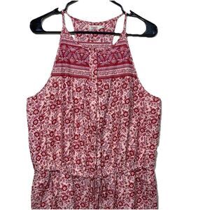 Faherty Women’s Jumpsuit Size L Red Boho Floral Print Organic Cotton Sleeveless