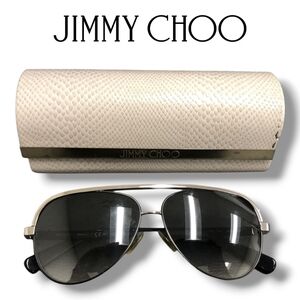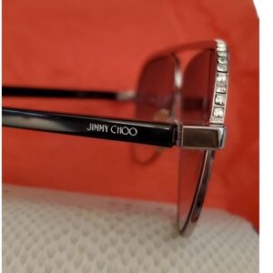 Jimmy Choo LINA/S Silver Black Crystal Jeweled Aviator Gradient Sunglasses