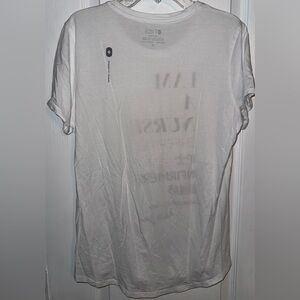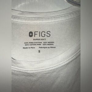 This Figs t-shirt features a classic crew neck design with short sleeves, crafted from a comfortable cotton blend. The crisp white color is complemented by bold black typography, making it a stylish choice for casual wear.