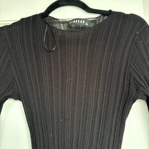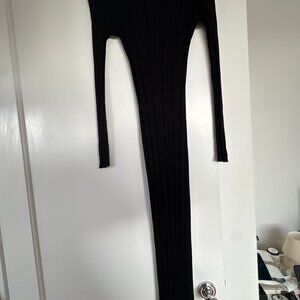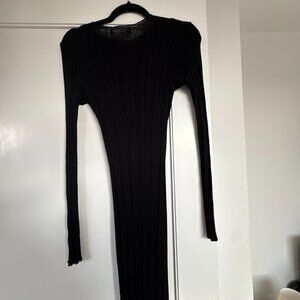 Lioness Prophecy Maxi Sheer Dress Black Onyx Ribbed Knit Crewneck Long Sleeves