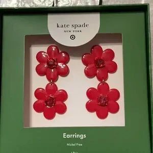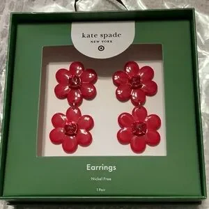 Elevate your accessory collection with these stunning red floral earrings from Kate Spade. Crafted with a vibrant cherry red hue, these earrings feature a playful cluster design that mimics the beauty of flower petals. Made with a glossy finish, they offer a bold and dimensional look perfect for making a statement. Ideal for adding a touch of elegance and color to any ensemble.