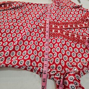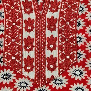 Tory Burch Red Jayne Mod Flower-Print Sequin Lace Tunic Size 8 Boho