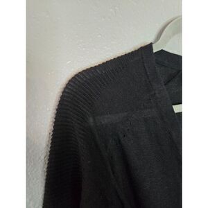 Simply Vera Vera Wang Women's Black Button Up Long Sleeve Sheer Cardigan. Features Tie at Waist for Flattering Fit. Soft and Lightweight. Sweater: 55% Ramie; 45% Rayon. Woven: 100% Polyester. Size Medium. Excellent Used Condition.