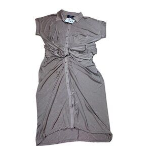 NWT Nina Parker Plus Size 2X Tan Tie-Front Ruched Shirtdress