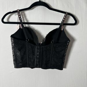 NWT-Victoria Secret Croquet Lace Babydoll Layering Pink Black Corset Sz S -DD