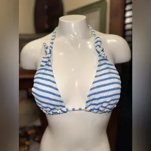 EUC Textured Triangle Bikini Top - Xhilaration Blue Stripe L