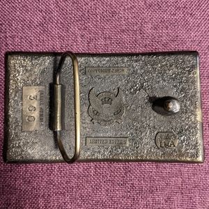 Rare Limited Edition Winchester Repeating Arms belt buckle. Heavy, real metal buckle featuring a rifle on the front. Back confirms made in the USA in Chicago by The Great American Buckle Co, serial number 360. Firearms hobbyists will love this.